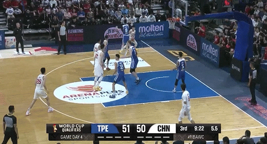 林庭谦、陈盈骏相继得分再度拉大分差!中国男篮66-75中国台北
